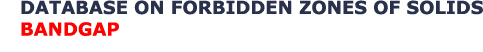 The database "Bandgap" covers values of width of forbidden zone of the major classes of inorganic substances. The database contains information on methods of bandgap determination and the appropriate temperature ranges. The data on chemical and phase composition of materials, type of a crystal lattice (crystal system, structural type, space group), orientations of samples at optical measurements are given in addition. The all data are provided with references. Database includes the extensive graphical information about dependences of bandgap on various factors.